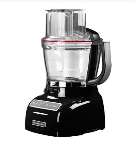 Robot culinaire KitchenAid Noir. Livré complet avec un bol de mélange de 3,1 litres et un mini-bol de mélange de 950 ml, un couvercle avec une ouverture d'alimentation extra-large, 2 vitesses de 900 à 1750 tr/min et une touche pulse. Le robot culinaire est livré en standard avec 3 lames, des disques de coupe et de râpage, un batteur à œufs, une spatule et une boîte de rangement pratique.